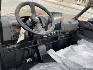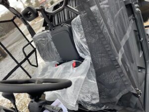 Unit is powered by 1000cc 105hp gas engine. 1000lb capacity dump bed, 2″ receiver with 2500lb towing capacity, seating for 3, roof and more. backed by 2 year warranty.