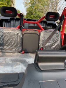 Unit is powered by a 1000cc 105hp gas engine. Includes 30″ tires on premium wheels, seating for 6 with seat belts and storage bin under seats, wireless remote, 1000lb capacity dump bed, 2″ receiver with 2500lb towing capacity, roof, touch screen, reverse camera and more. Backed by a 2 year warranty.